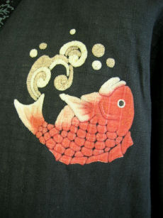 「金運上昇のぼり鯉」作務衣/綿100%/和柄/日本製/黒 <6205>