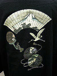 和柄作務衣「手描き・富士鷲桜」/黒/日本製/富士山・桜・花<6226>