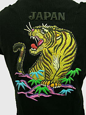 和柄作務衣「手描き・岩笹虎」/黒/日本製/虎<6223>